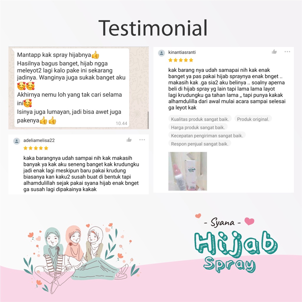 Kelebihan - Kelebihan membeli Syana Hijab Spray Anti Letoy Jilbab Kerudung Instan Spray Pewangi Parfum Hijab Jilbab Instan Syari Niqab Pashmina Jilbab Sport Jilbab Bergo Bella Square Jilbab Pasmina Plisket Pasmina Inner di Toko ini