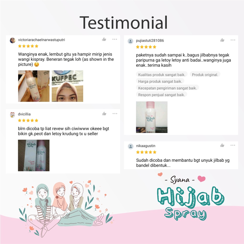Kekurangan - Kekurangan membeli Syana Hijab Spray Anti Letoy Jilbab Kerudung Instan Spray Pewangi Parfum Hijab Jilbab Instan Syari Niqab Pashmina Jilbab Sport Jilbab Bergo Bella Square Jilbab Pasmina Plisket Pasmina Inner di Toko ini